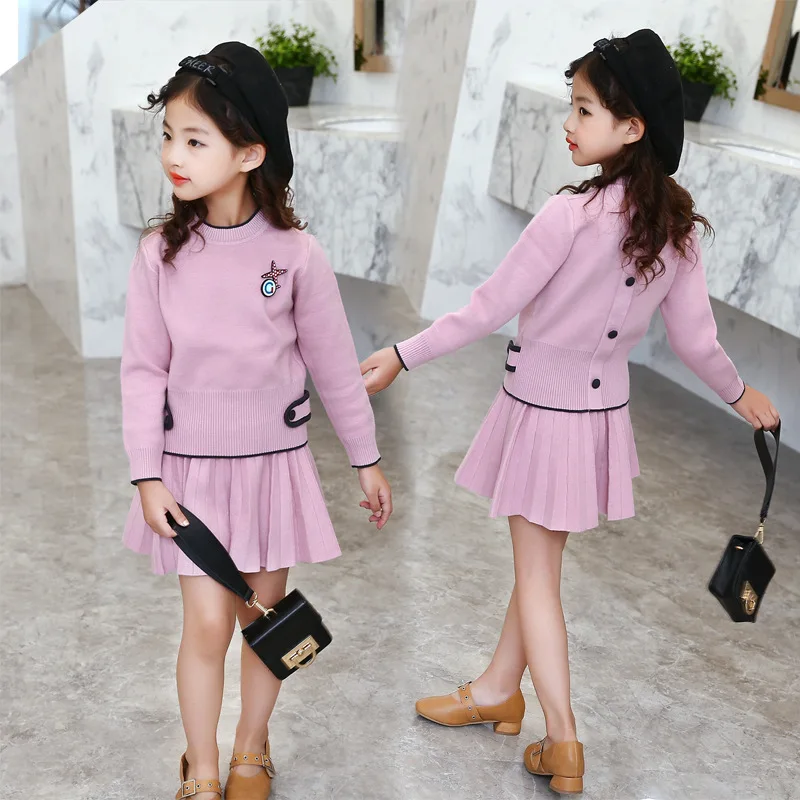 New Fashion Girls Clothing Set Sweater Top + Dress 2pcs for Baby Girl Clothes Children Suits Kids A