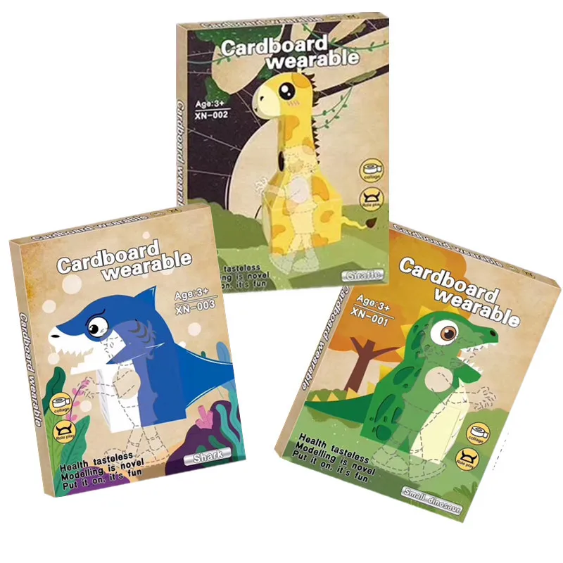 DIY Paper Material Arts Cartoon Animal Costumes For Kids Dinosaur Giraffe Cartoon Costume Children