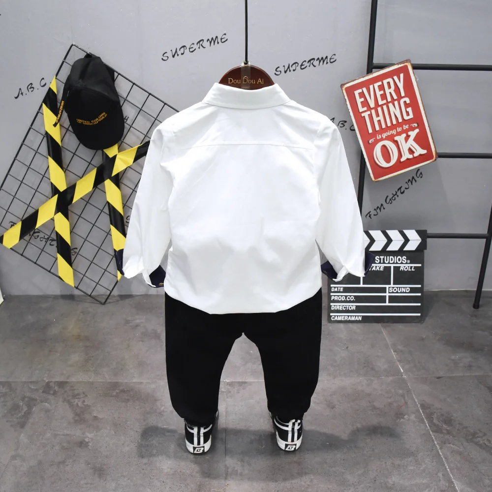 Hot Sale 2PCS WLG boys winter clothing set kids white velvet shirt and thick pant set baby boy warm casual c