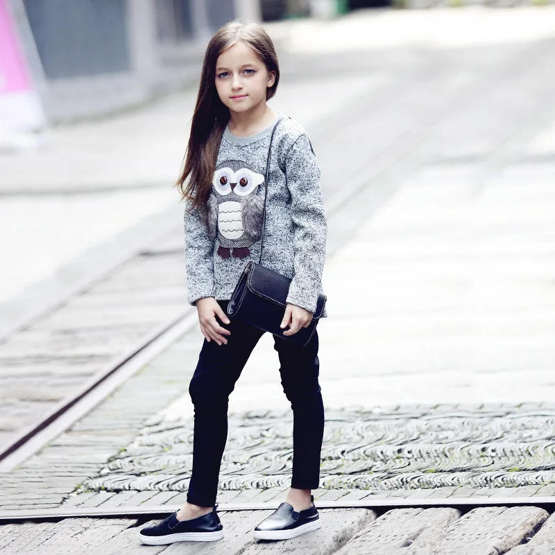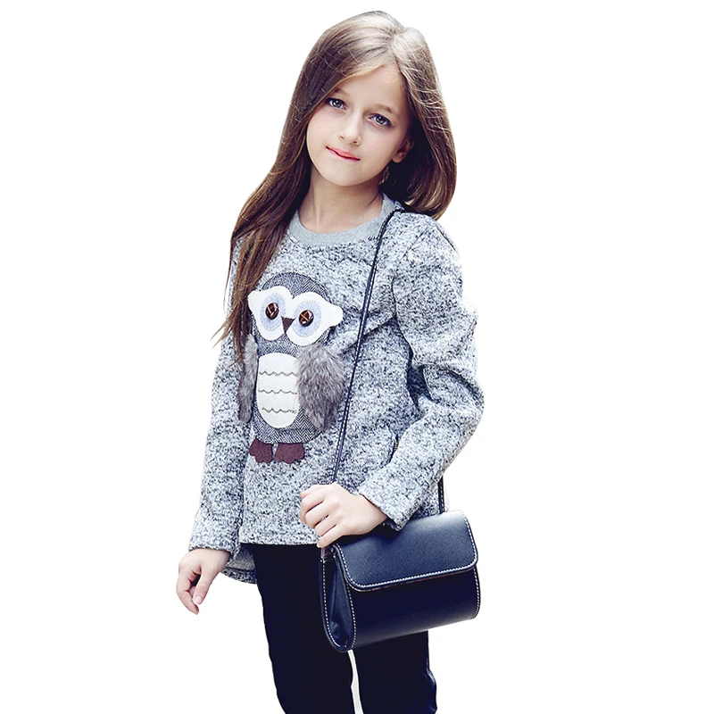 6-16Y new fashion Kids Girls Fleece Lined Zipper Sweatshirt Cartoon Cute Owl Casual Cotton Girls Wi