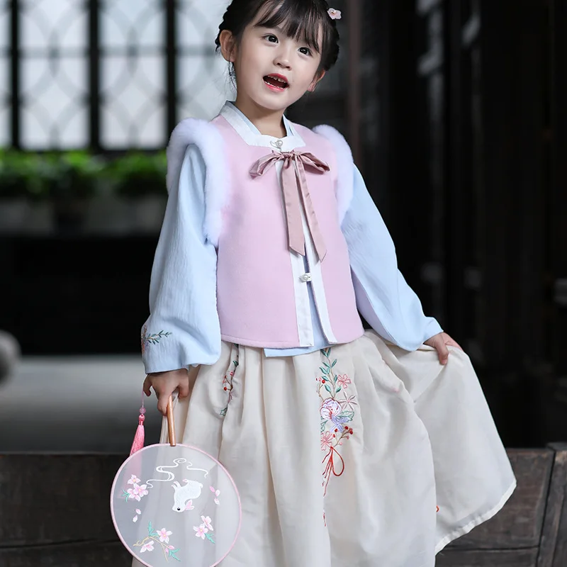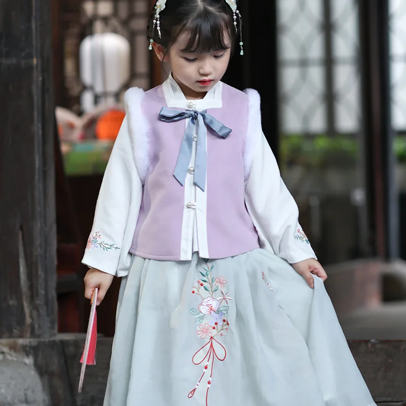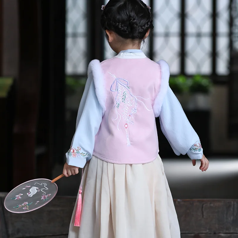 Chinese Traditional Spring/Autumn Kids Coat Han/Tang/Qing Dynasty Princess Winter Cloak Girls Hanfu