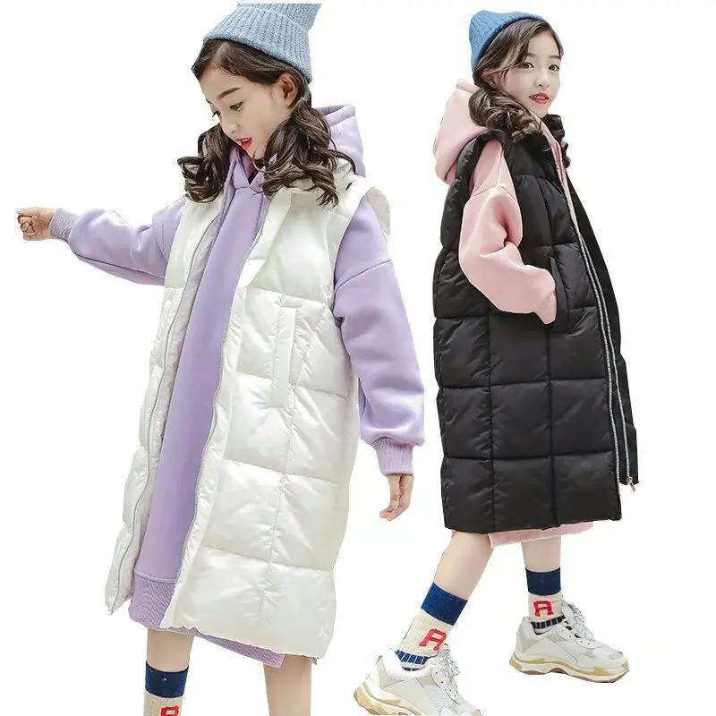 BEST Girls Clothes Sets Winter Girls Down Jacket Vest Children Clothing Velvet Long Hoodie Kids Tracksui