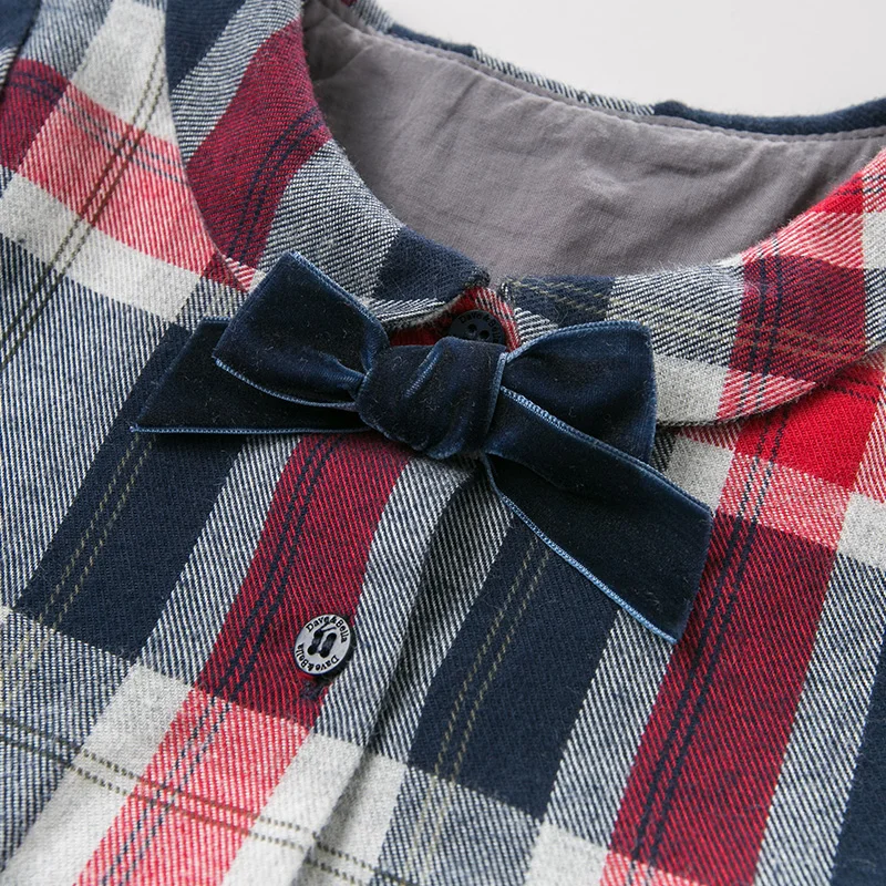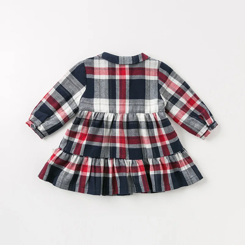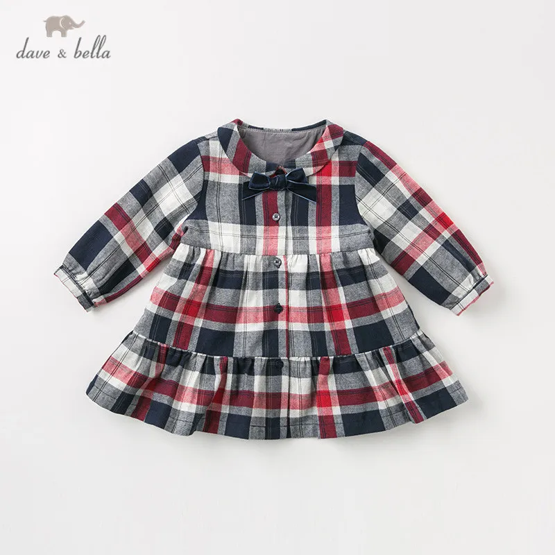 TOP DB11757 dave bella autumn baby girl's princess cute bow plaid dress children fashion party dress ki