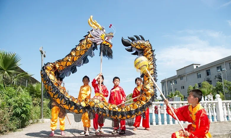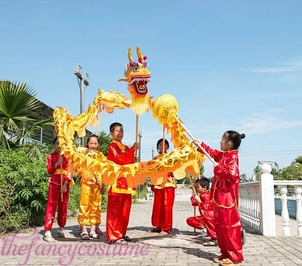 New 7.9M yellow gold children size CHINESE DRAGON DANCE Gold-plated Folk Festival Celebration Costu